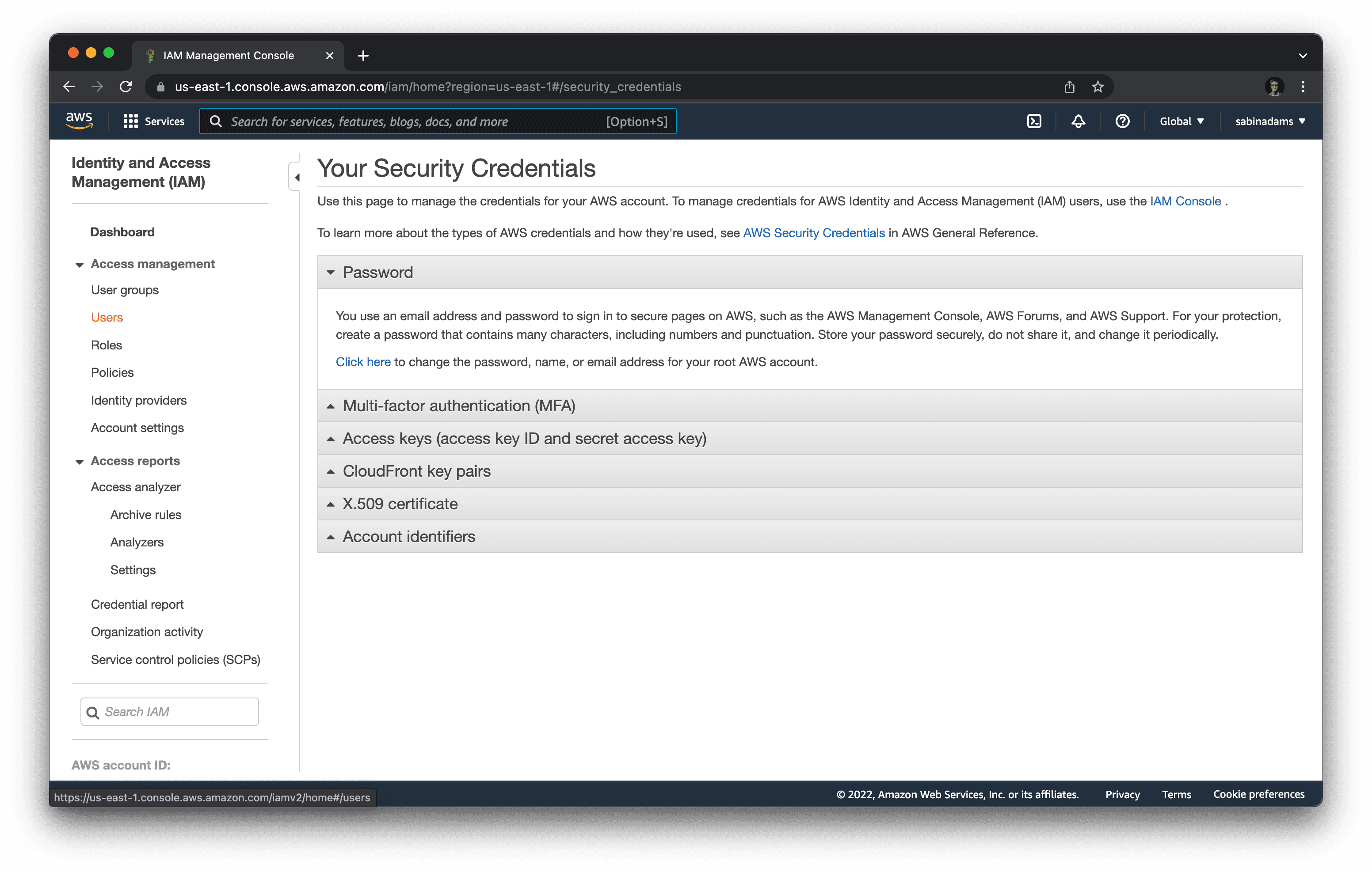Once you have an account, you will need an Identity Access Management (IAM) user set up in AWS so you can generate an access key ID and secret key, which are both needed to interact with S3.