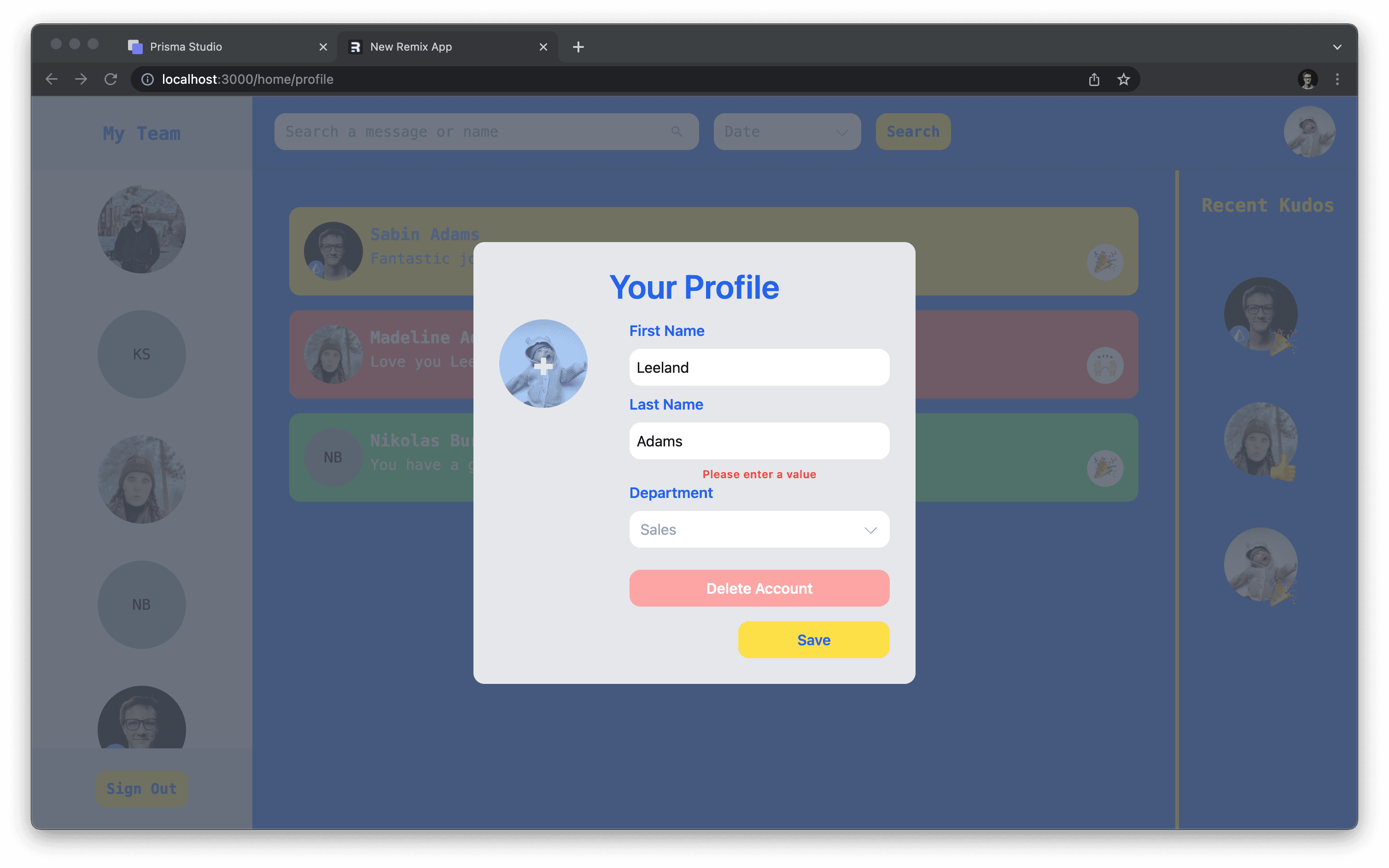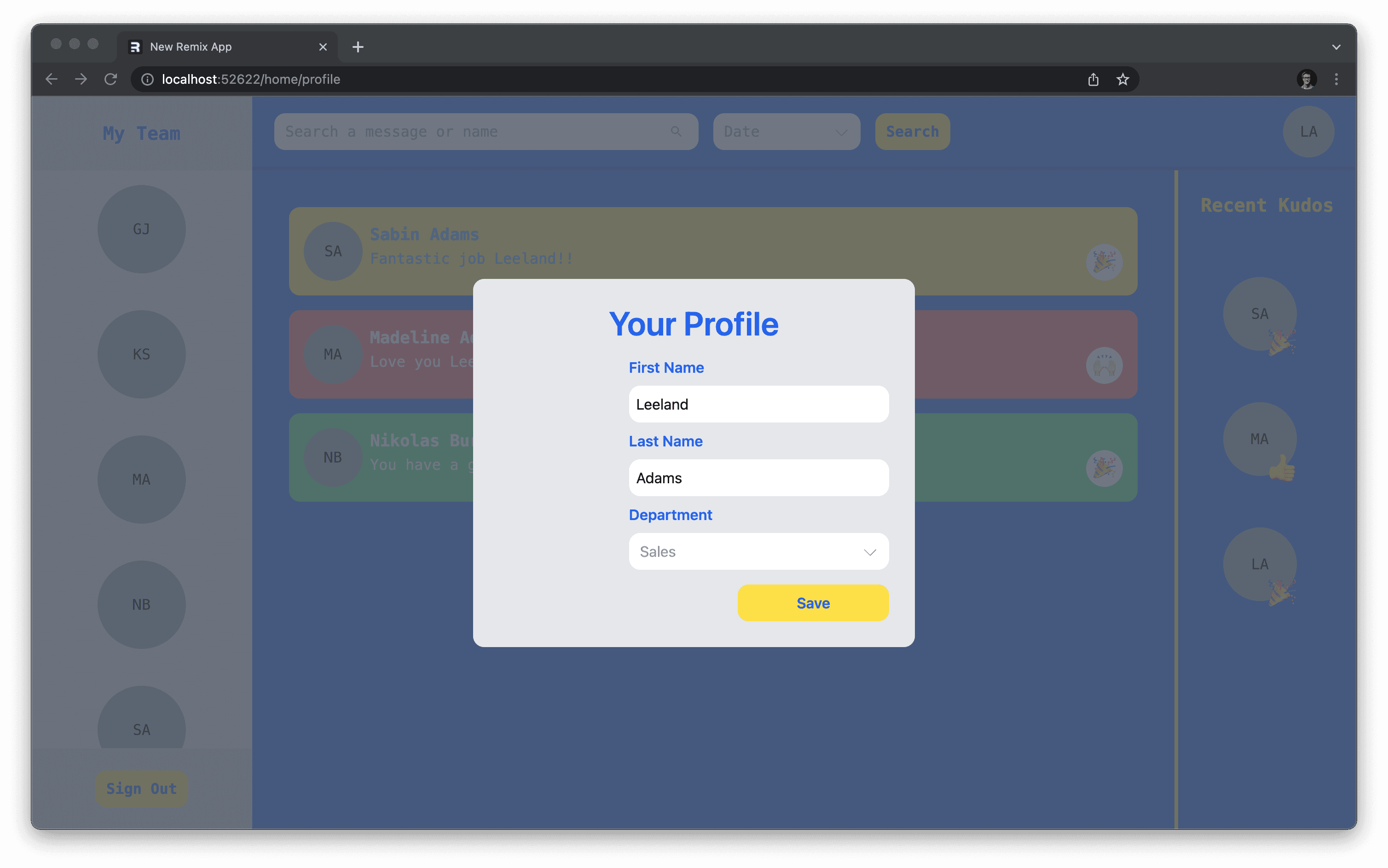 In the previous part of this series you built the main areas of this application, including the kudos feed, the user list, the recent kudos list, and the kudos-sending form.