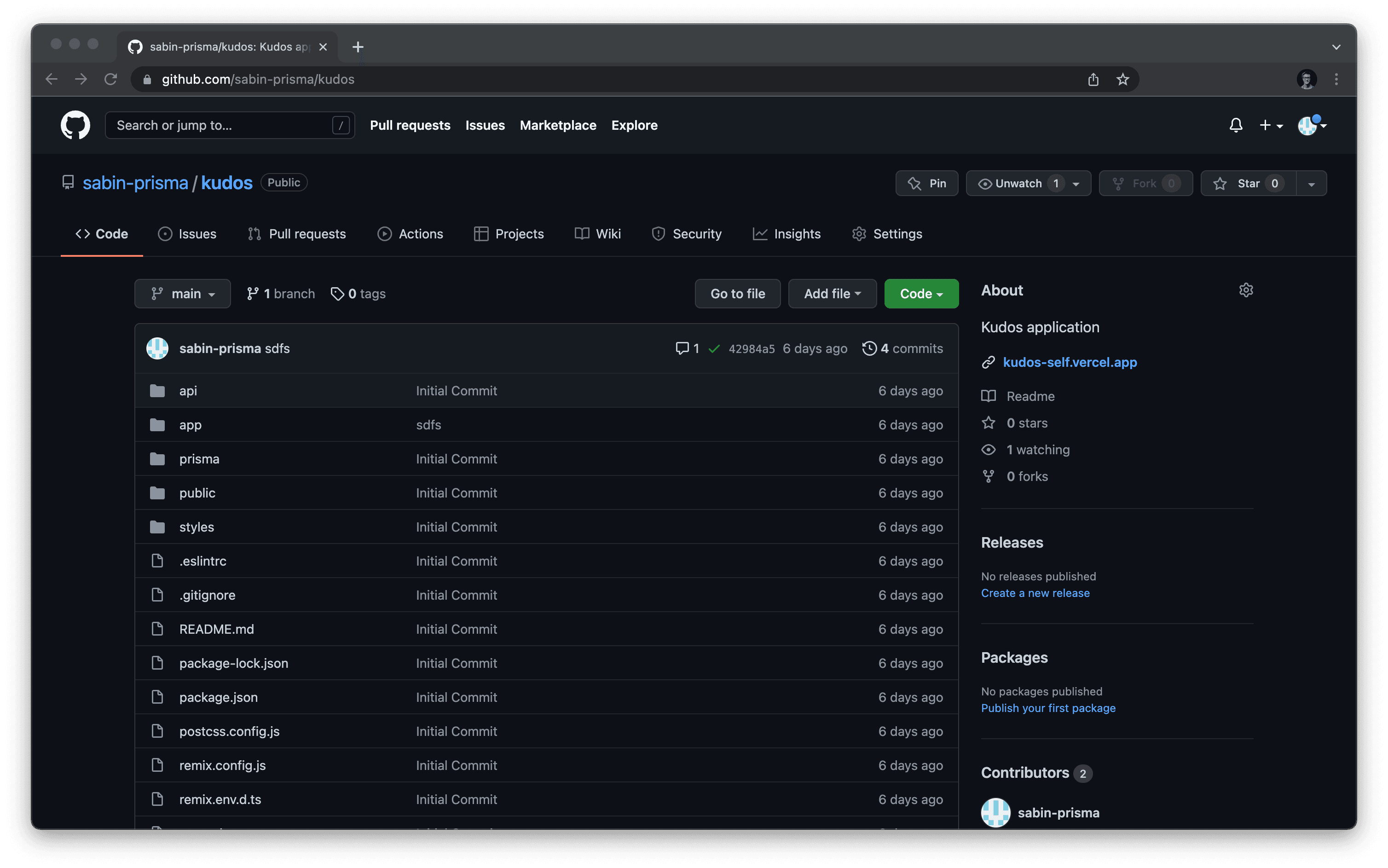 Once that finishes, head over to the repository page on GitHub. You should see your codebase has been pushed up and made available on GitHub.