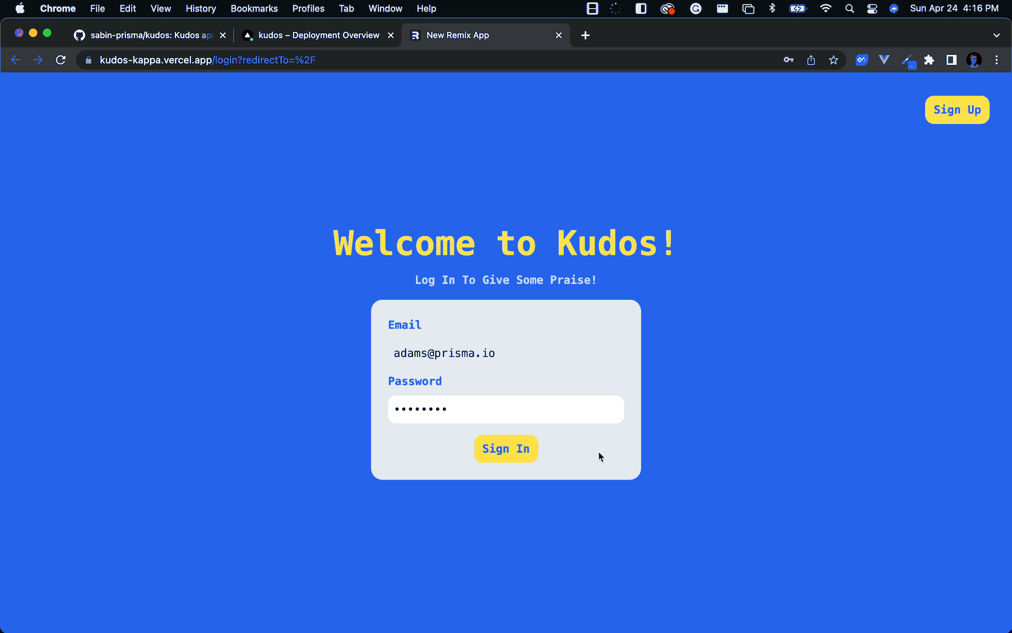 Now if you head back to your deployed application and attempt a sign in or sign up, you should now be able to complete the action successfully!