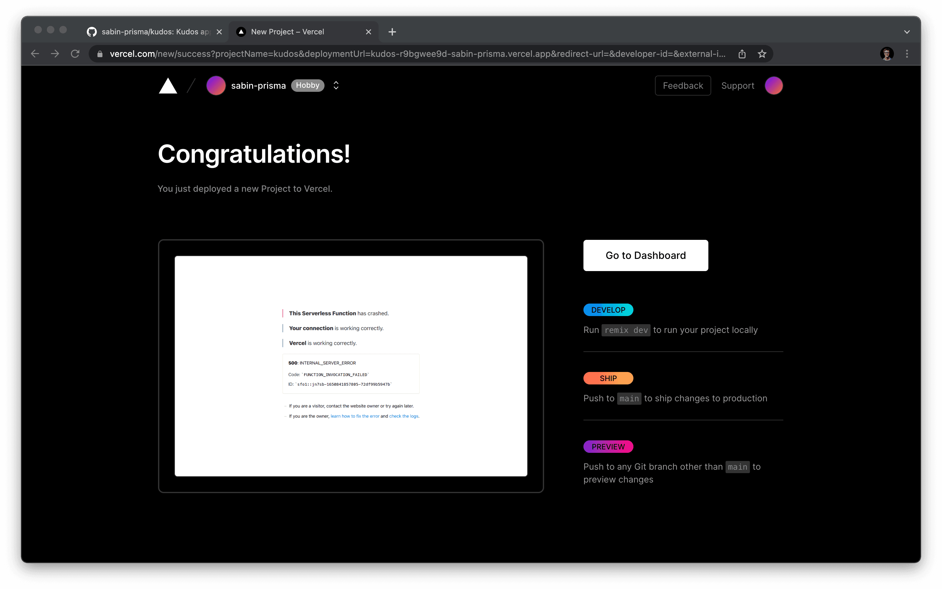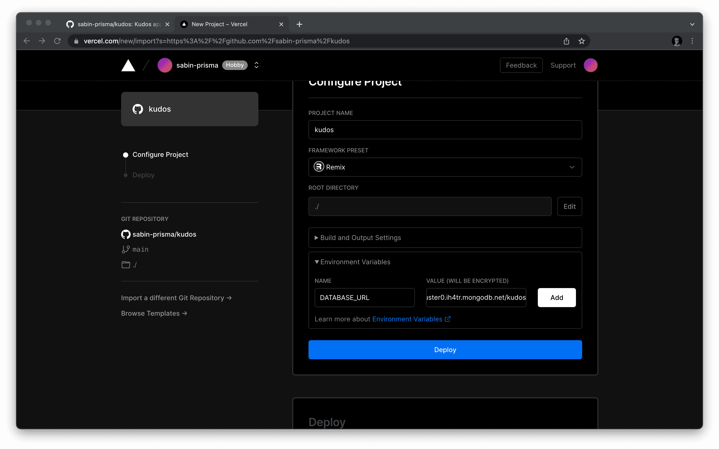 Welcome to the last article of this series where you are learning how to build a full-stack application from the ground up using MongoDB, Prisma, and Remix! In this part, you will deploy the application you've been building using Vercel.