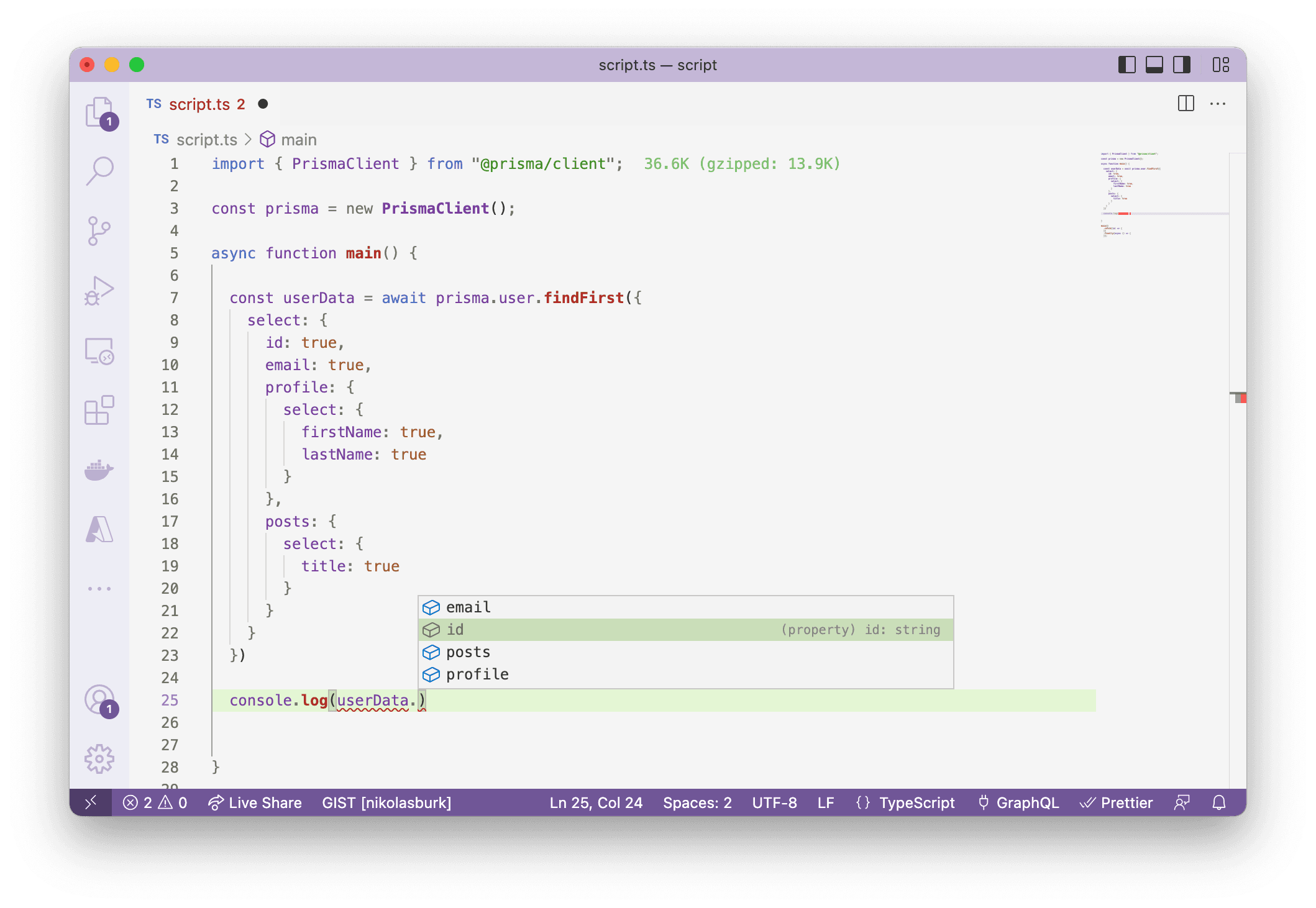 - The TypeScript compiler will catch cases where you accidentally access a field that was not returned from the query.