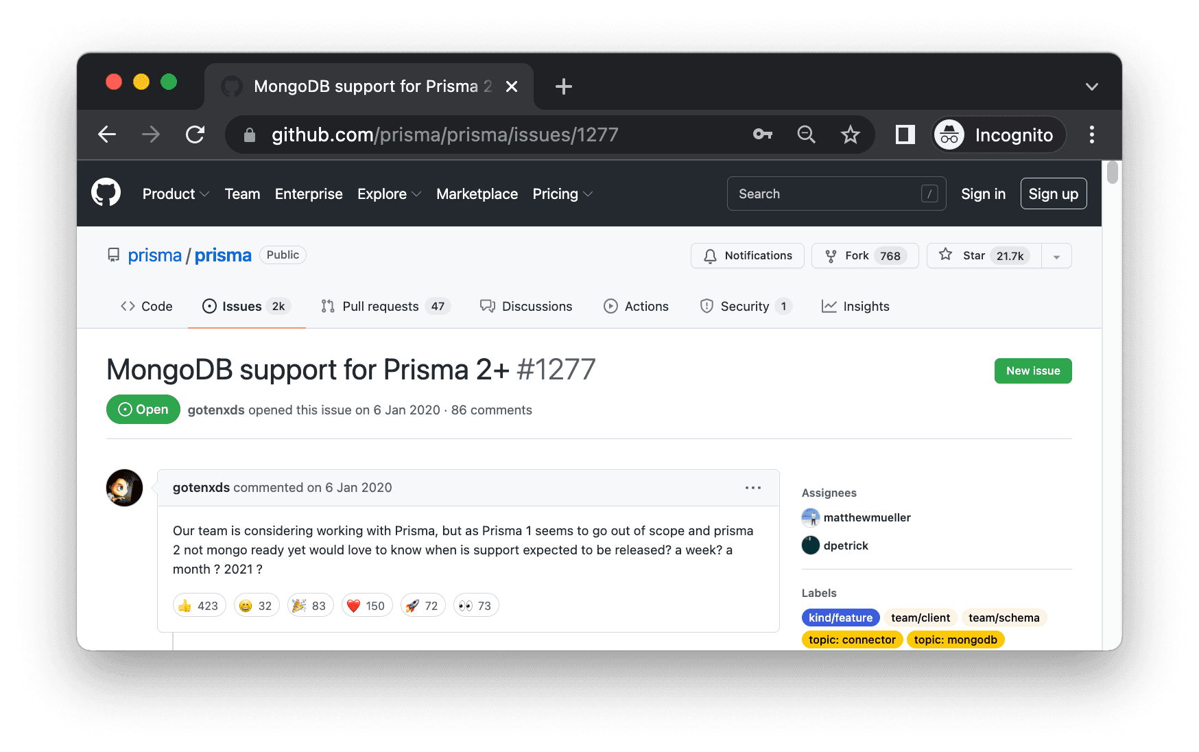 Support for MongoDB has been one of the most requested features since the initial release of the Prisma ORM. Using both technologies together makes developers more productive and allows them to ship more ambitious software faster.