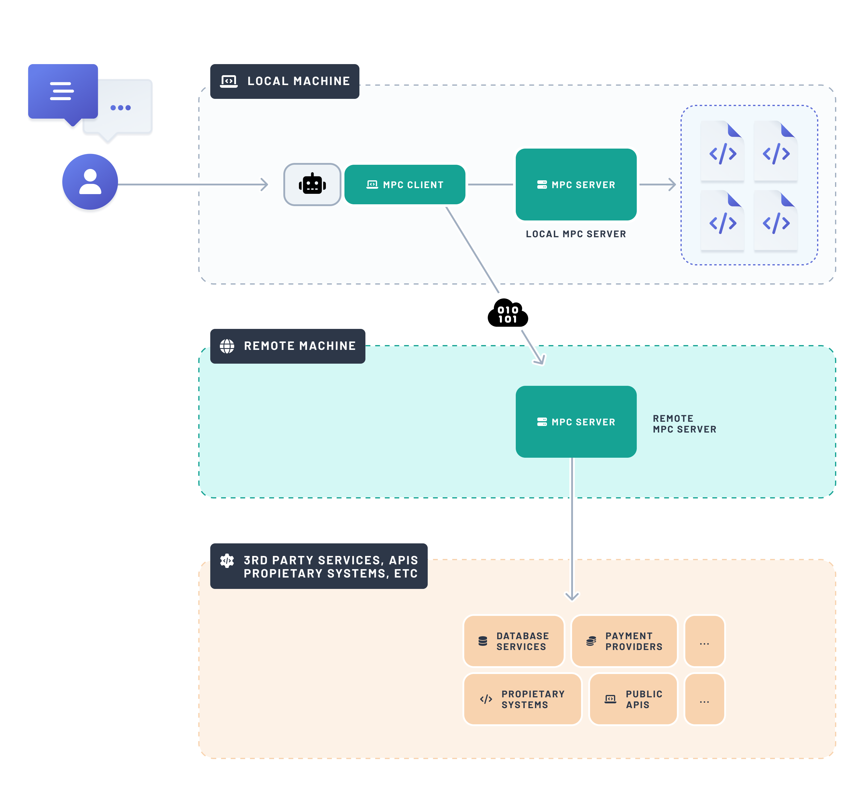 When building an MCP server, you must decide if it runs locally (on the same machine as the user) or remotely (on a machine accessible via the internet).