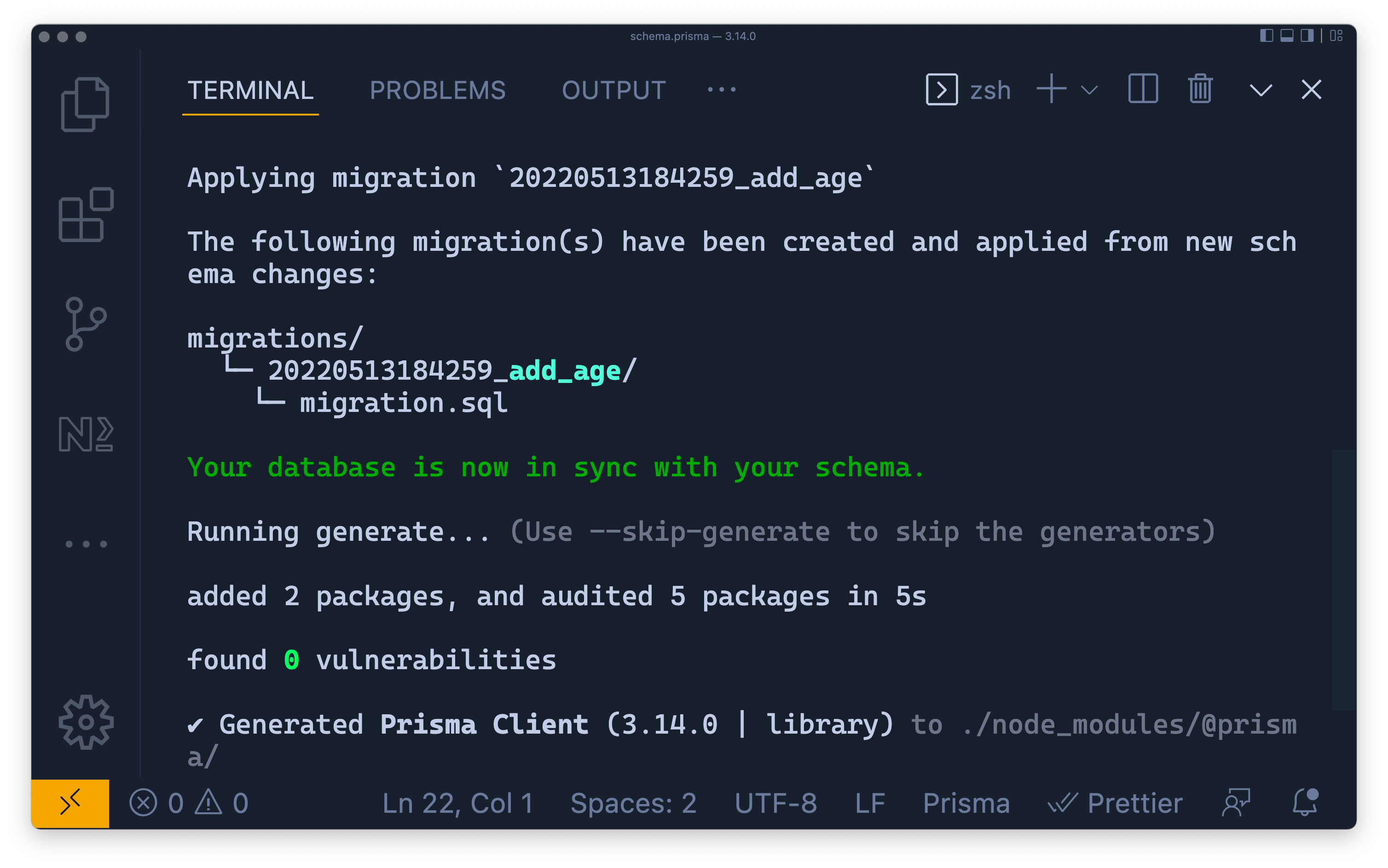 This feature, paired with Prisma Migrate, gives developers a very smooth workflow for managing your schema without the development team having to worry about how those changes are propagated.