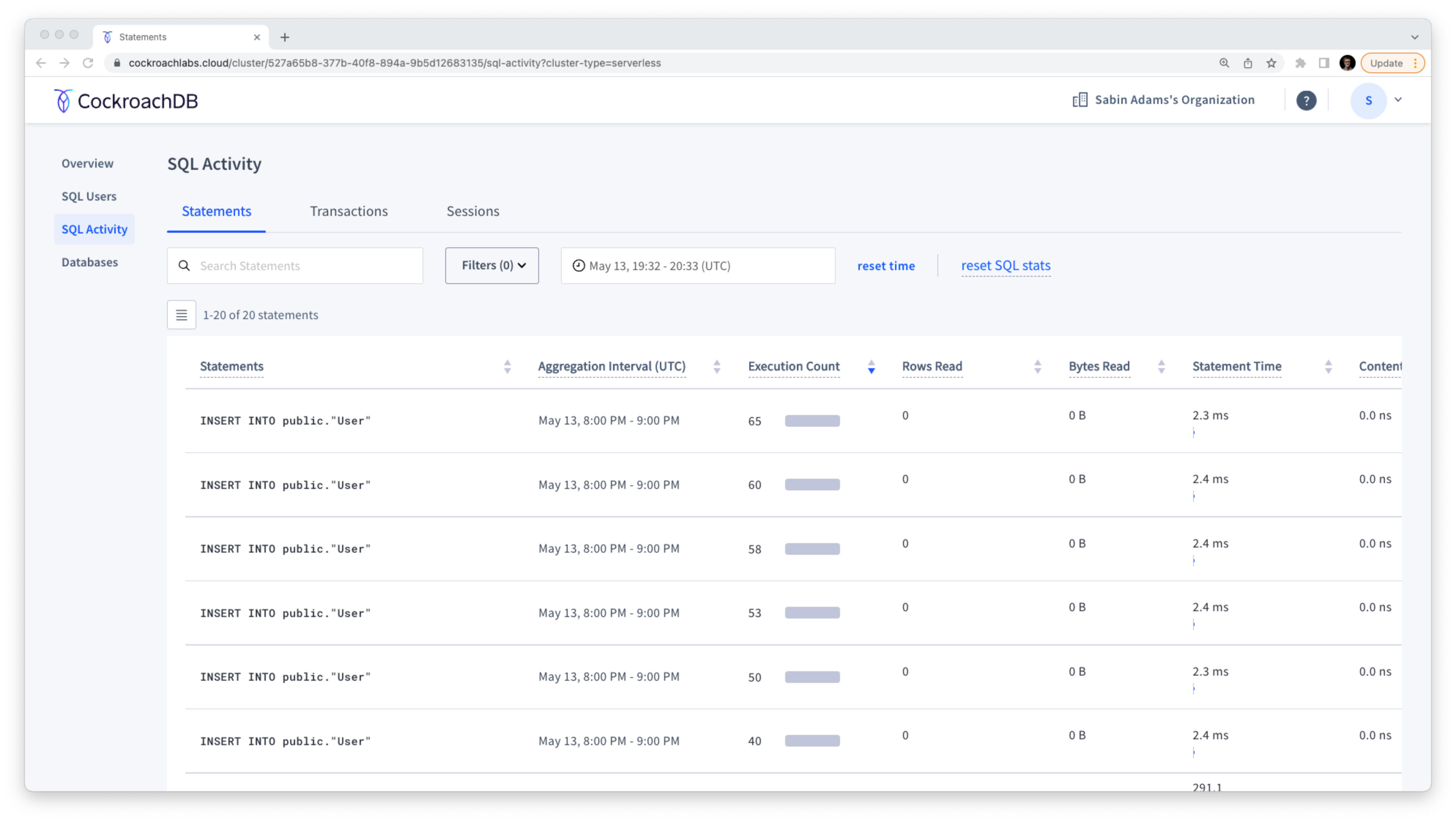 This, along with CockroachDB's statement monitoring page provide a super useful set of tools that empower developers to have clear insights into their queries' performance and pathways to optimizing them.