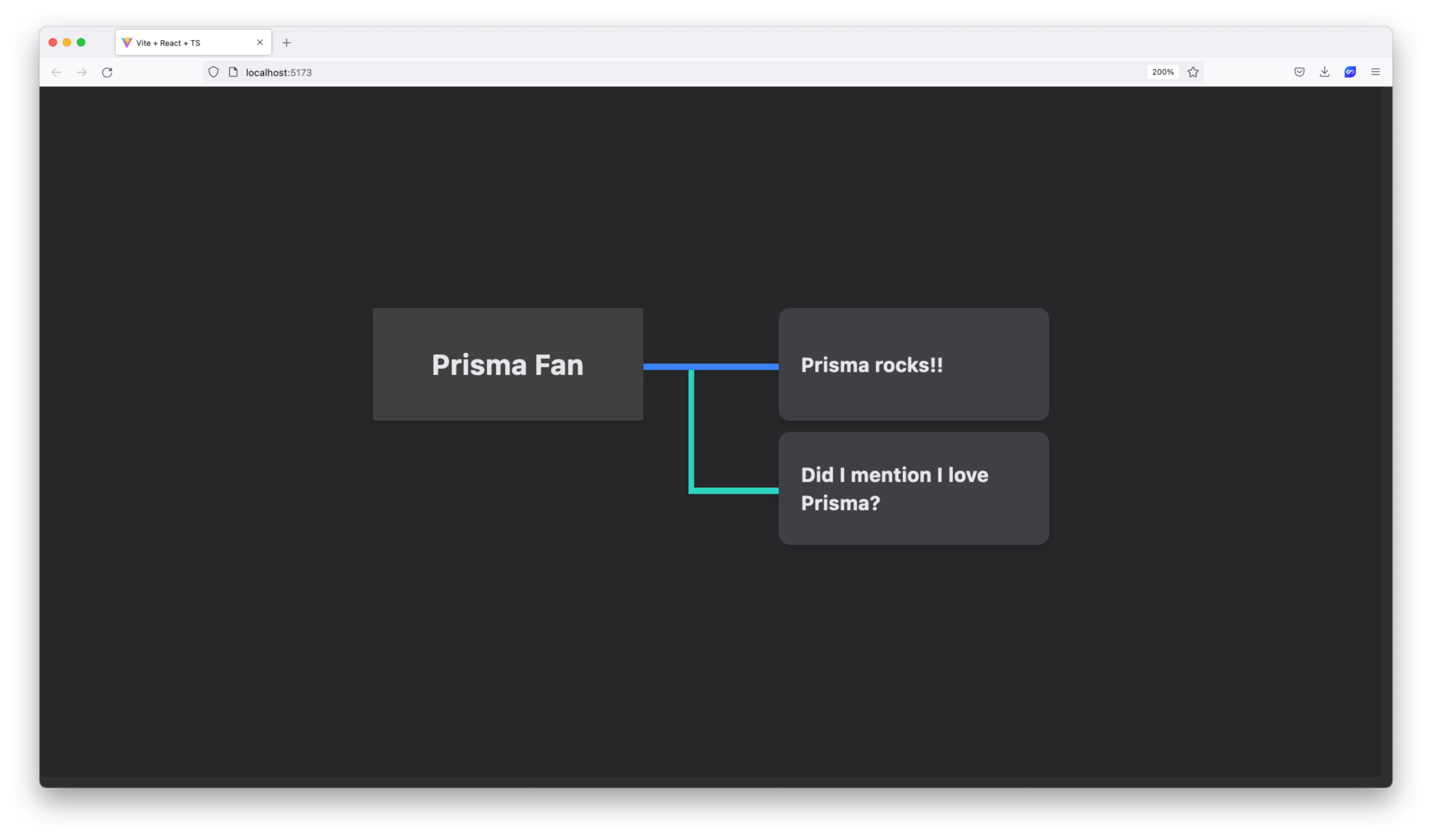 That looks great, however there is one last thing to add. You are building a tree view, so the final piece is to render "branches" that connect each message to its user.