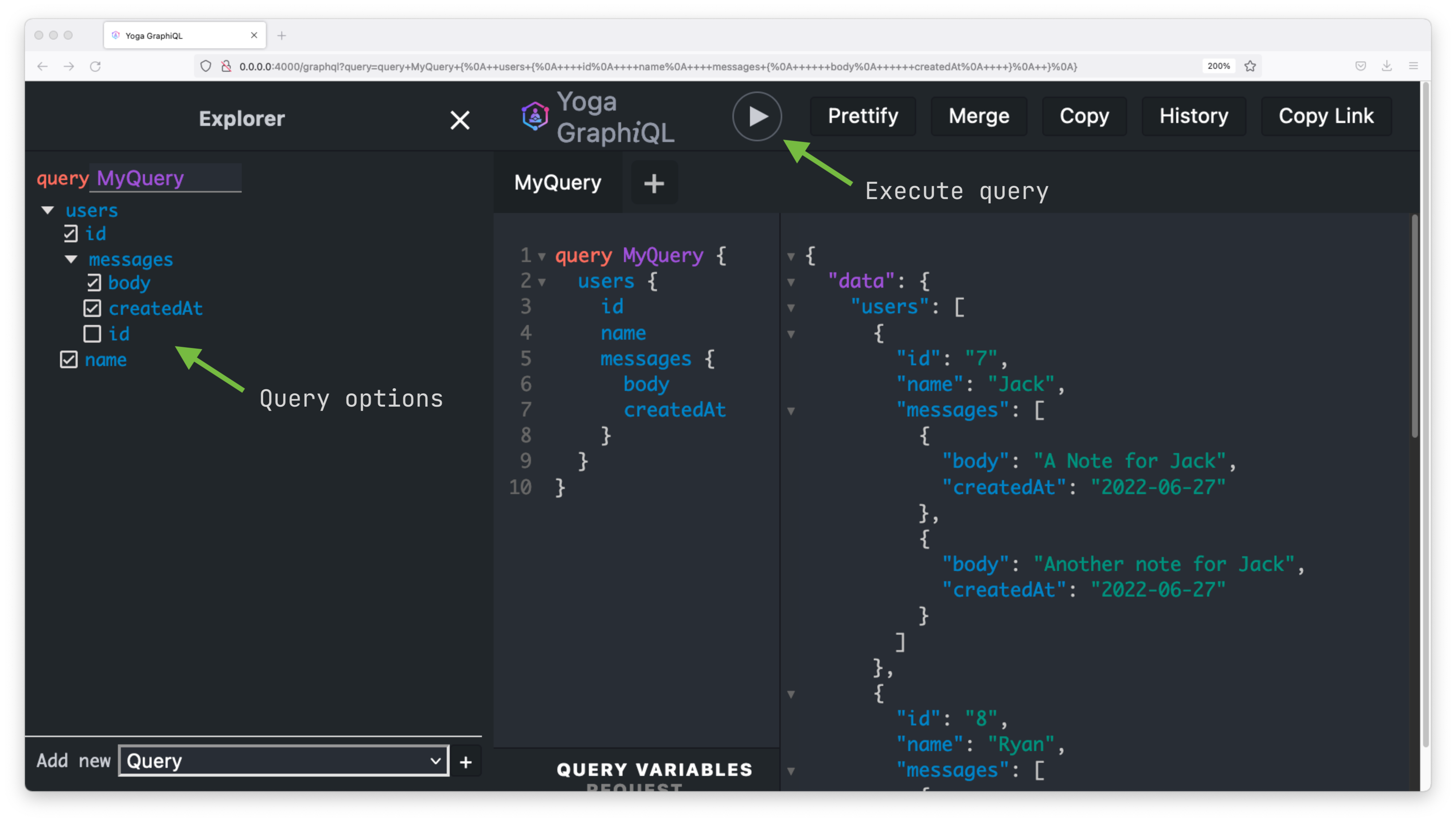 - Set up a GraphQL server with GraphQL Yoga
