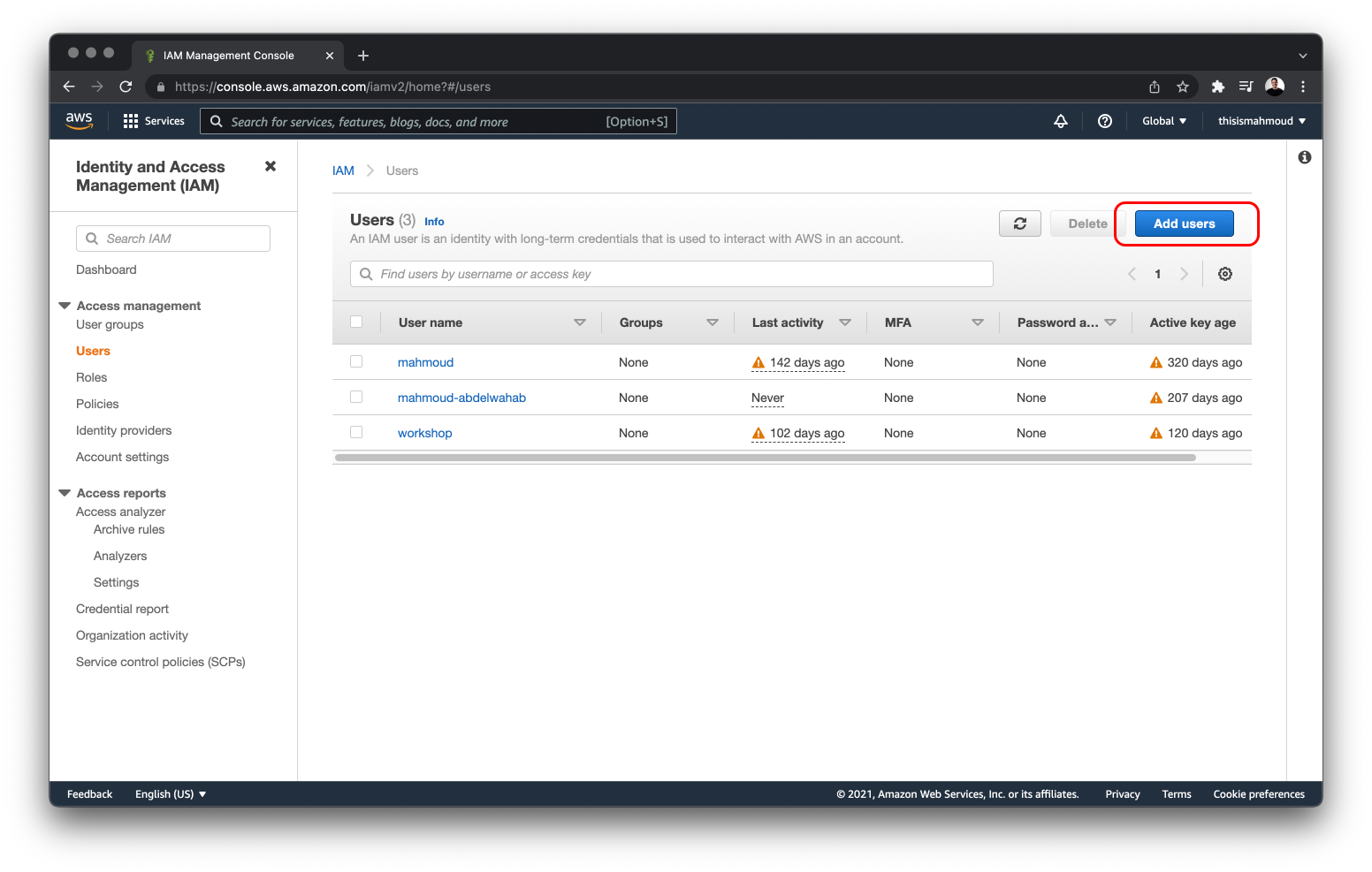 Next, click the Add users button to create a new user.