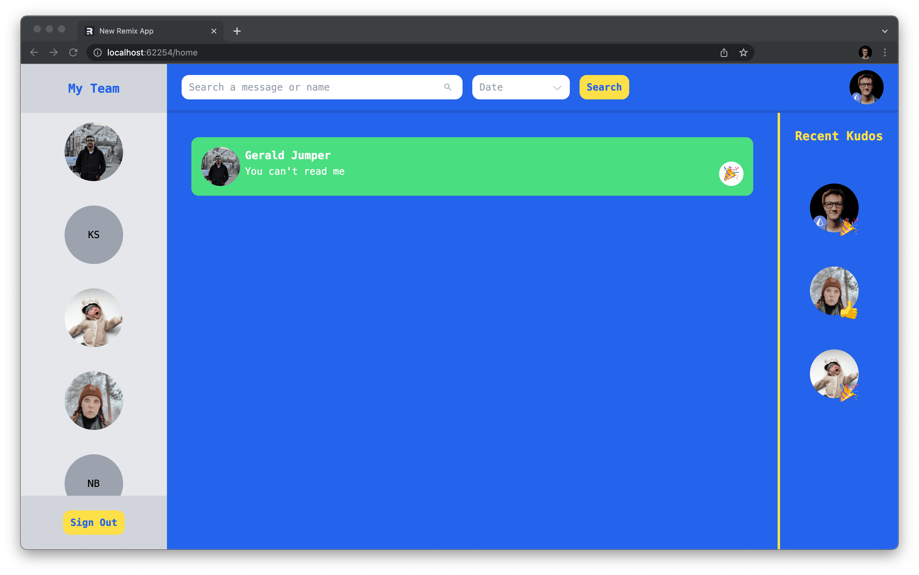 In the previous part of this series you built the main areas of this application, including the kudos feed, the user list, the recent kudos list, and the kudos-sending form.