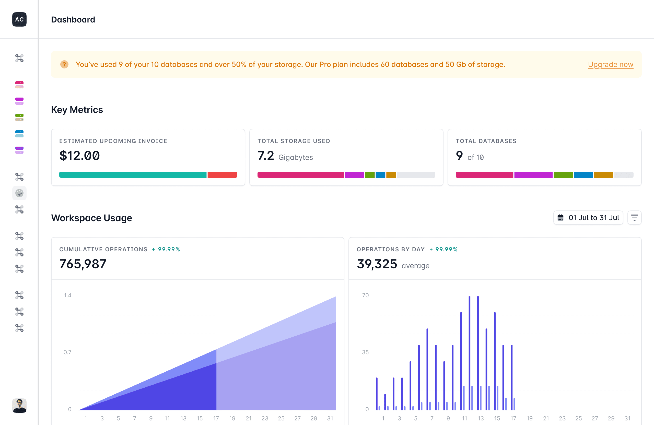 New usage metrics available in Console Dashboard