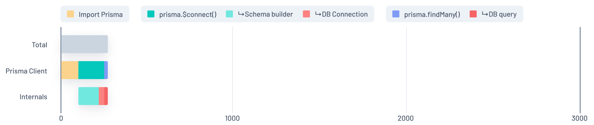 As you can see, there is a significant improvement in Prisma's startup performance. We'll now dig in and discuss the various changes that got us to this much improved state.