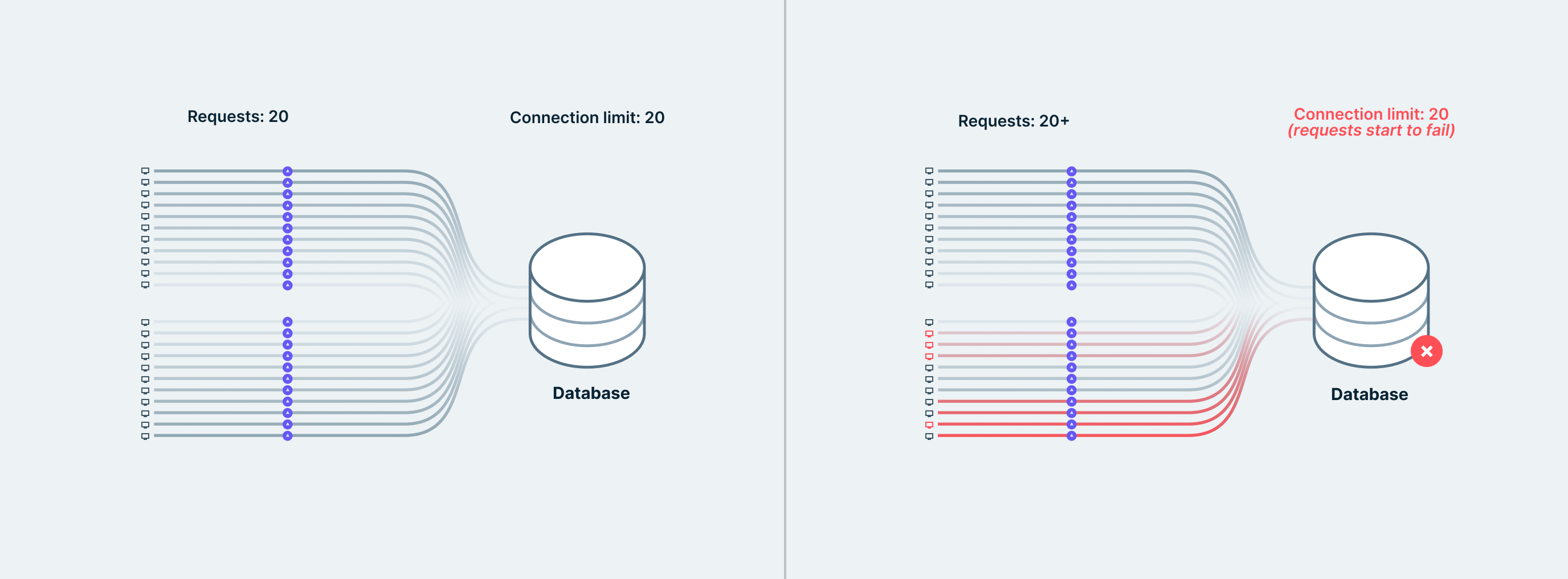 So besides the exhaustion of the database connection limit, performance can be impacted by the fact that database connections do not get reused.