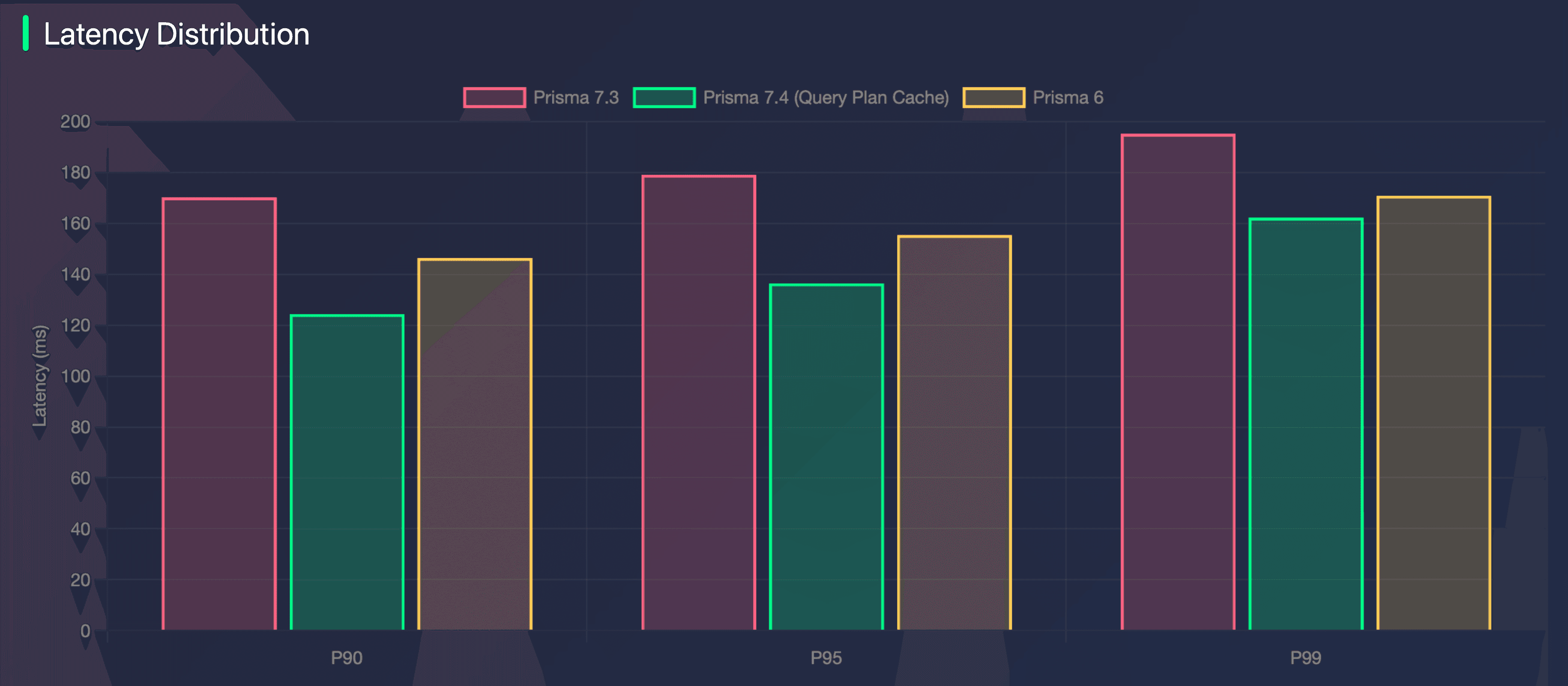 We’ve added a new query caching mechanism so that Prisma Client does not rebuild the SQL statement on every request. Let’s look at the numbers: