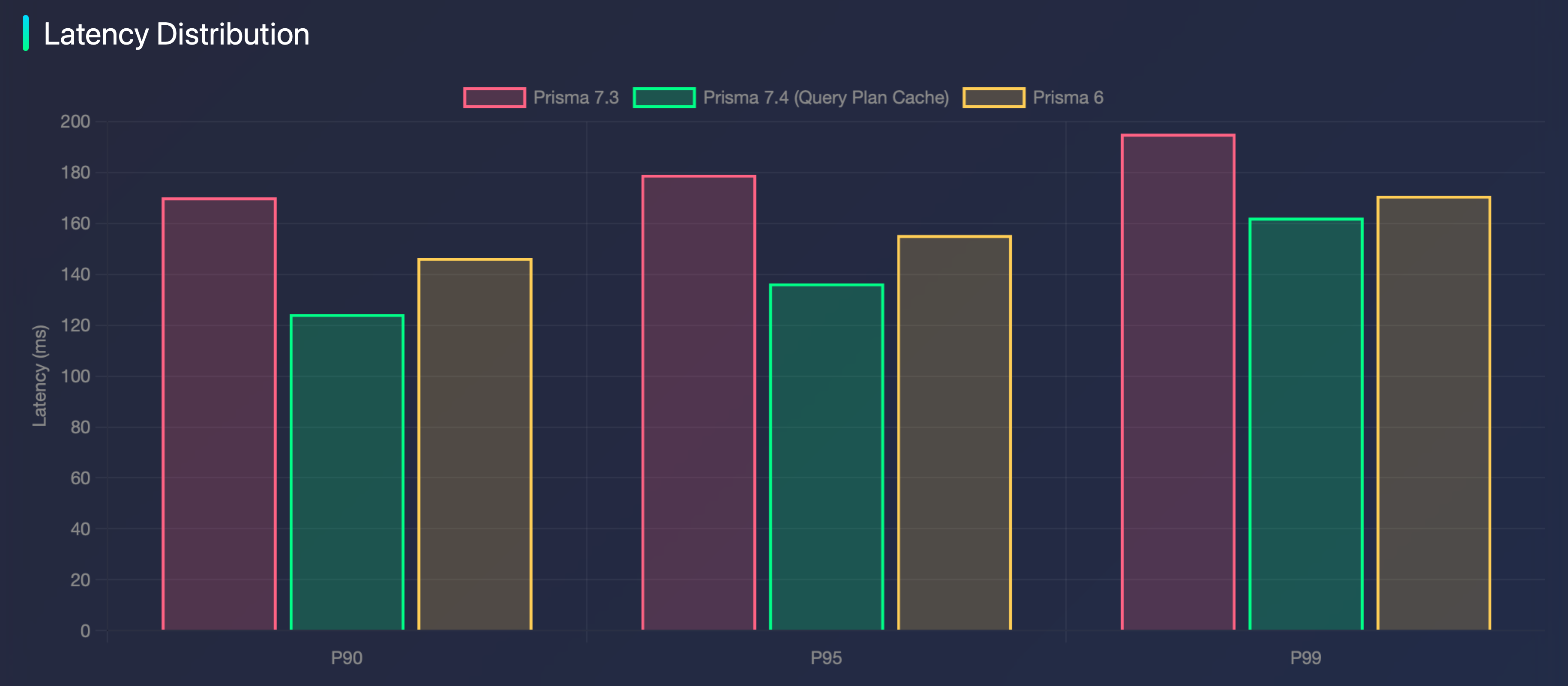 We’ve added a new query caching mechanism so that Prisma Client does not rebuild the SQL statement on every request. Let’s look at the numbers: