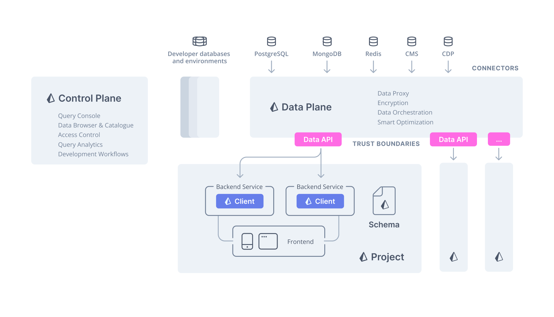 The Data Plane is where your code is flowing through at runtime of your application. It connects your database infrastructure with your application layer and ensures that queries are efficient and secure.